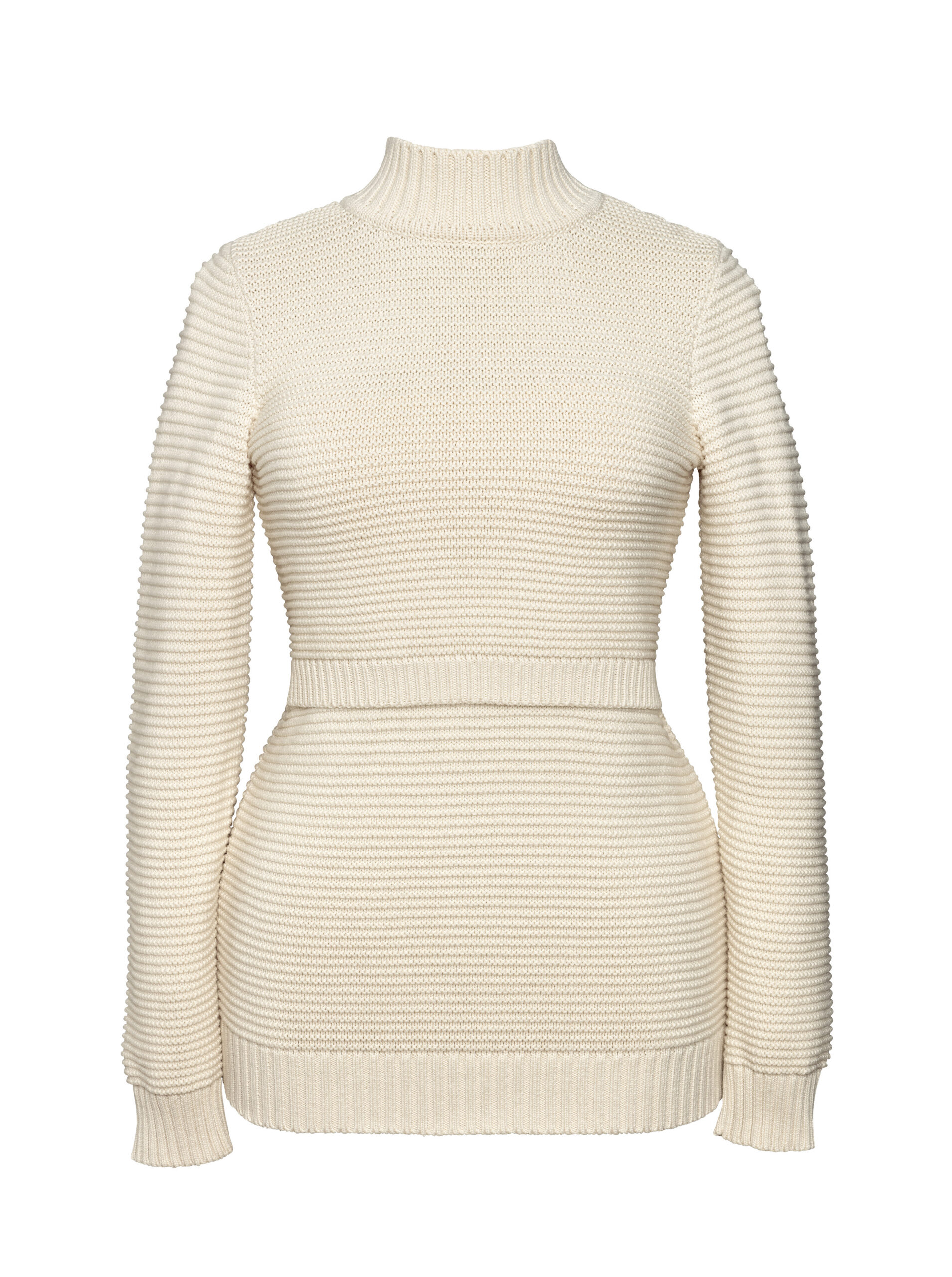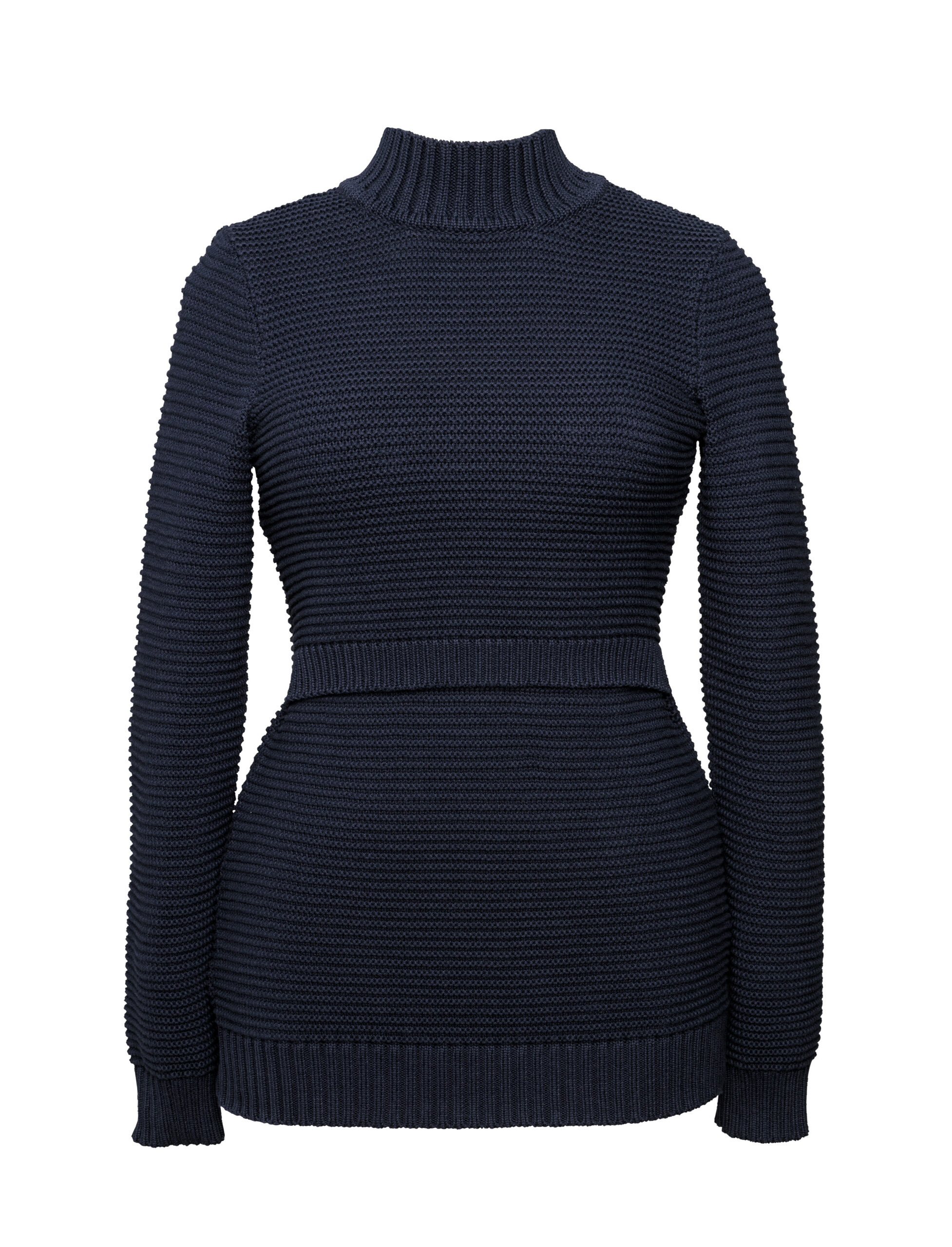 The perfect cure for cold and drafty days, this long-sleeved maternity pullover features our signature nursing function for easy access, and a round neckline with a subtle mock turtleneck collar. Made out of high quality ribbed organic cotton.